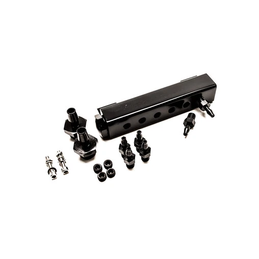 Ideal for making your engine bay neater, this anodized manifold allows you to group all of your components that require a vacuum source (boost controler, boost pressure gauge, wastegate, fuel pressure regulator…) and reduces the space occupied by your hoses, ensuring a tidy, reliable and professional looking installation !