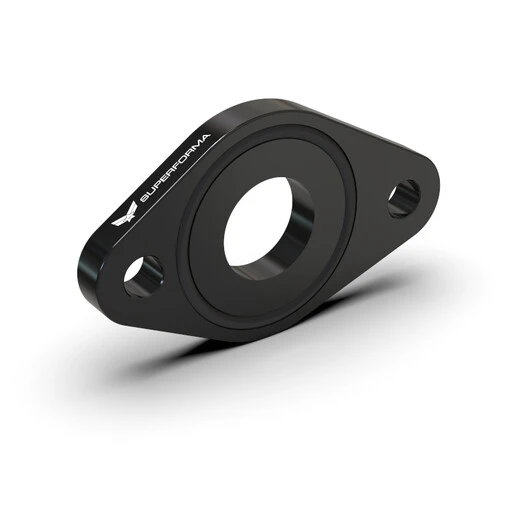 This spacer for rear wheel drive Nissan SR20DET is needed to install an AN-16 thermostat housing. It allows you to space the housing away from the engine to allow clearance of an AN fitting on your auxillary belts.