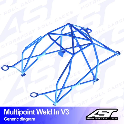 AST roll cages are generally available in several versions, featuring evolutions according to your needs : X or V design, cross or diagonal protections for doors and roof, “Nascar” style side reinforcements, additional bars, compatibility with a sunroof, location of rear anchoring points, number of doors, and so on. Modification or removal of interior components such as dashboard, door panels, trim, rear seats, are generally required. Each AST roll cage is supplied with all the necessary hardware and accessories : reinforcement plates, bolts, documentation, installation instructions and stickers.
