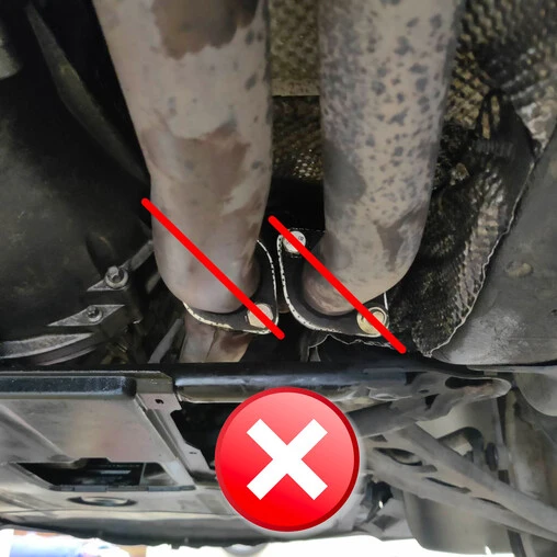 The DriftShop exhaust system uses the “South-West / North-East” orientation of the M54 for wider compatibility. Given that many vehicles of this generation have been modified during their lifetime, often without the knowledge of their current owner, it is difficult to ensure traceability of E46 models. Thus, we advise you to systematically check the orientation of the flanges on your vehicle before placing your order.