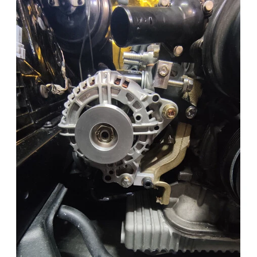 With this observation, our partner MZR Garage has developed a kit to install a modern Bosch alternator on Nissan SR20 engines. This is a very common Bosch part number (used mainly by the VAG group: Volkswagen, Seat, Audi, Skoda, Porsche …), very reliable and ensuring 140A continuously. This “plug & play” kit has been designed to install a Bosch alternator as a direct replacement of the original alternator, and guarantees reliable and linear intensity and tension regardless of the load and engine rev.