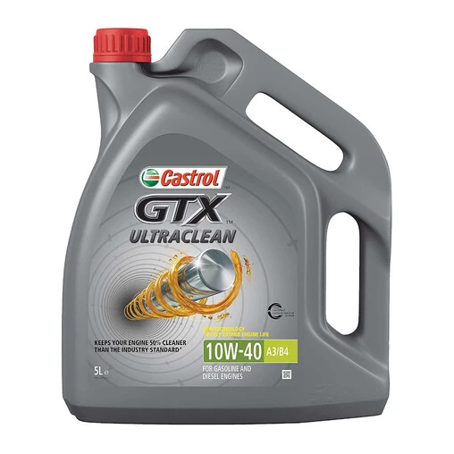 This Castrol GTX Ultraclean 10W40 semi-synthetic oil has been specially formulated for gasoline and diesel engines. Designed to withstand high temperatures and difficult traffic conditions, this lubricant protects the engine from existing and new sludge build-up to extend its life. Extremely effective, the specific formula of this oil provides 50% more protection against deposits than the most stringent industry standard tests for a cleaner, longer lasting engine.