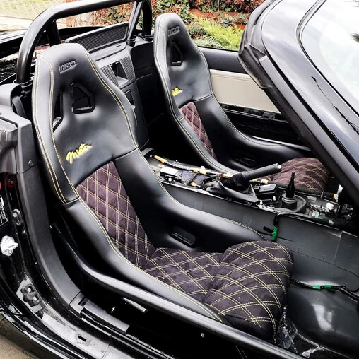 These Cybul mounts make it easy to install a bucket seat in the cockpit of a Mazda MX-5 NC. Compatible with all bucket seats with side mounting points, they provide an ultra-low driving position and are available for either the left or right side.