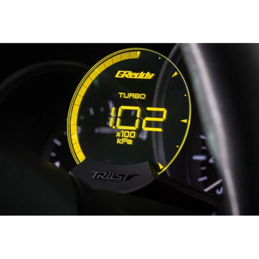 Each gauge is equipped with non-reflective glass and high contrast white LEDs, ensuring great visibility, even in sunny conditions, thanks to their adjustable brightness and automatic night mode. All necessary accessories are included (sensor, cables, bracket, stand). The precision of GReddy sensors is incredible : paired with high quality stepper motors, you are given extremely accurate, real time data on your gauge.