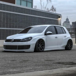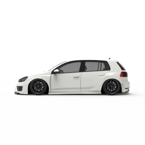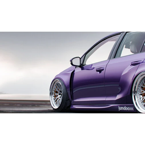 Radically transform the look of your VW Golf 6 GTI (5-door) with this widebody kit designed by Jumdoo, the expert in spectacular body parts! This set consists of two front fenders, two rear fenders and two side skirts made of flexible and resistant ABS plastic. This kit will be ideal in combination with deep wheels and a greatly lowered ride height. Body parts need to be painted before installation.