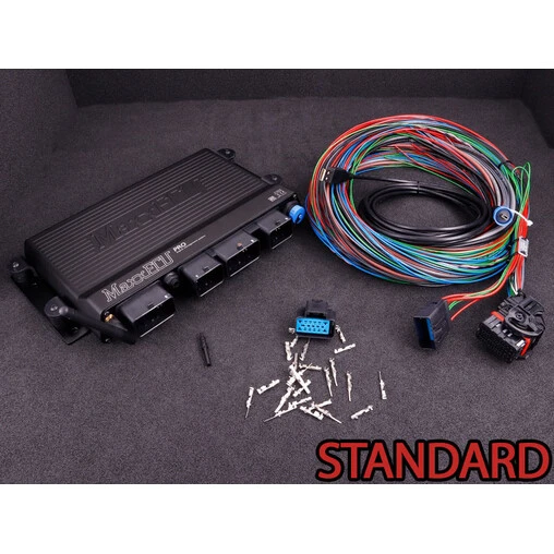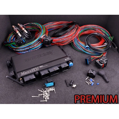 The Standard version of the MaxxECU Pro computer is supplied with a Bluetooth antenna, mounting brackets, a universal harness and a USB cable for PC connection, along with its wiring and operating instructions (in English). Choose the Premium package to receive on top : x2 Bosch LSU 4.2 AFR sensors with their wiring and connectors, and a harness extension to fit up to 12 EGT and 2 knock sensors (sensors sold separately). The “unit only” version will be fine you just need an ECU without any accessories, while all versions are waterproof (IP67 standards) and suitable for offroad and exterior use.