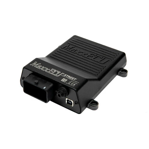 The MaxxECU Street management system is intended for engines up to 6 cylinders in sequential ignition, or 12 cylinders with wasted spark. It has a built-in 4 bar MAP sensor (intake manifold absolute pressure) directly available on the unit’s housing. Thanks to the MTune software, you will be able to build complete ignition and fuel maps along with many features: boost control, Flex Fuel, traction & launch control, anti-lag, and so on. With its 8 Mb of internal memory and ARM Cortex-M3 processor at 120 MHz, the MaxxECU Street engine management system is capable of feats: 1000 Hz data logging, ignition resolution of 0.1°, injection resolution of 0.001 ms, and up to 2000 injection and ignition computing per second.