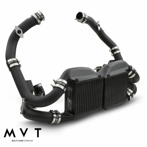 Designed for Nissan GT-R R35 (2007-2016), this front mount intercooler kit is a very innovative product. It benefits from the MVT system (Multi Vane Technology) which aims to significantly improve its efficiency, lower intake temperatures and increase engine performance. Thanks to a set of vanes housed in end tanks of the intercooler, the air flow is distributed through the entire core for considerably more efficient cooling compared to a model without MVT.