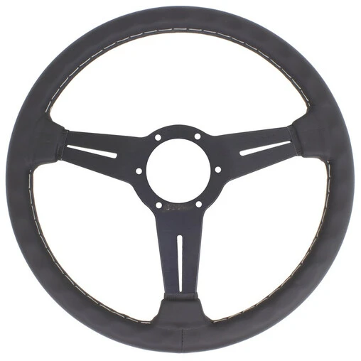 Nardi Classic ND34 Steering Wheel, Black Leather, Black Spokes, Grey Stitching, 25 mm Dish Specifications