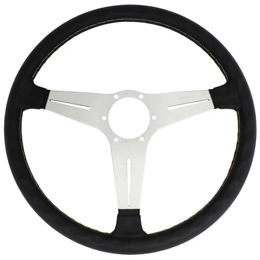 Nardi Classic ND34 Steering Wheel, Black Leather, Satin Spokes, Grey Stitching, 25 mm Dish Specifications