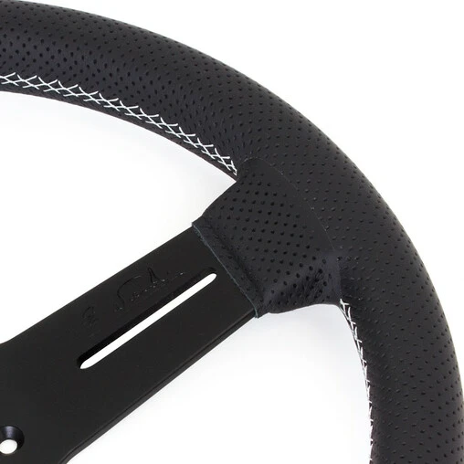 Nardi Competition Steering Wheel, Black Perforated Leather, Black Spokes, Grey Stitching, 25 mm Dish, Ø33 cm Specifications