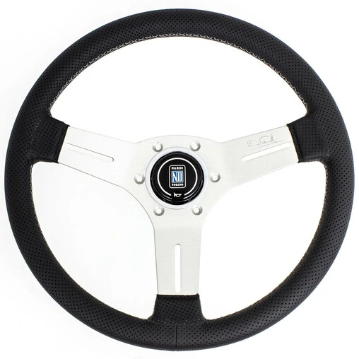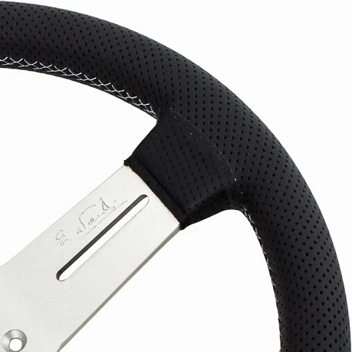 Nardi Competition Steering Wheel, Black Perforated Leather, Satin Spokes, Grey Stitching, 25 mm Dish, Ø33 cm Specifications