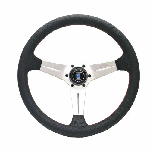 Nardi Deep Corn Steering Wheel, Black Perforated Leather, Satin Spokes, Red Stitching, 60 mm Dish, Ø35 cm Specifications