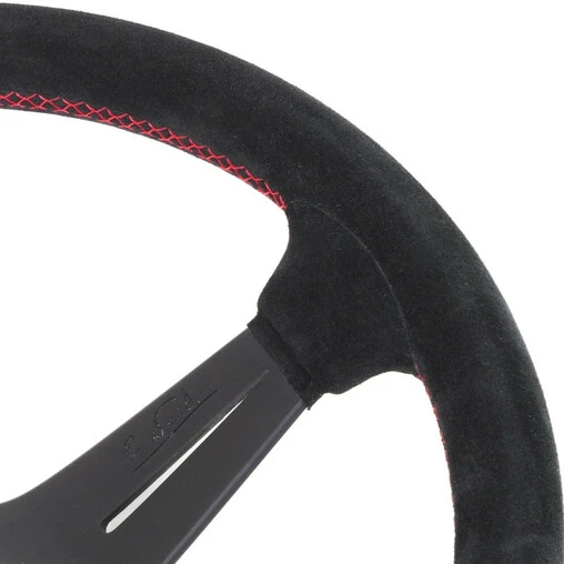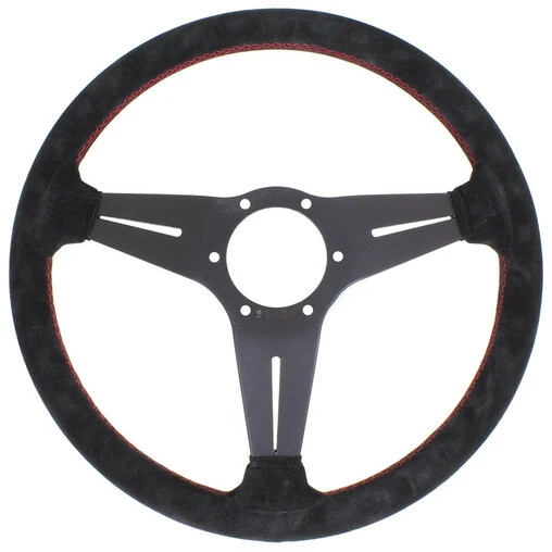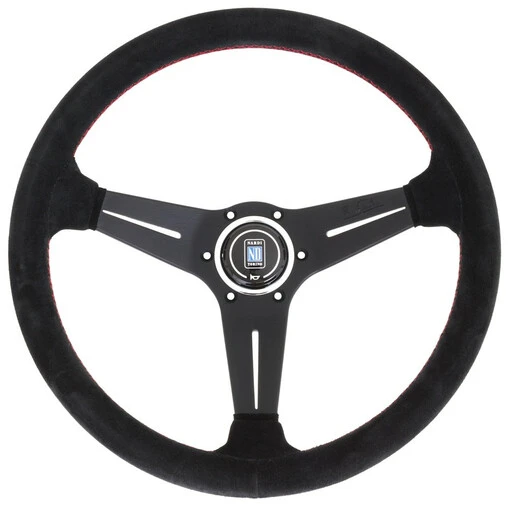 Nardi Deep Corn Steering Wheel, Suede, Black Spokes, Red Stitching, 60 mm Dish, Ø35 cm Specifications