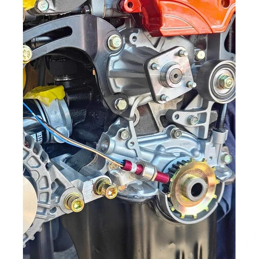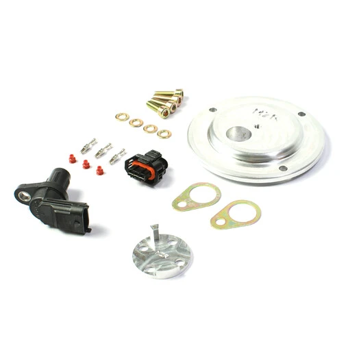 This kit is particularly recommended when upgrading or rebuilding a CA18DET engine in an S13 with an aftermarket ECU, and is compatible with original pulleys or aftermarket pulleys (ATI Super Damper or others). It can be installed without removing the timing belt but requires milling a few millimeters off the oil pump housing (see photo). Be careful though, this kit is not intended to replace original Nissan CAS (Crank Angle Sensor) and does not work with the OEM ECU. It is necessary to use a programmable ECU such as MaxxECU, Link, and so on.
