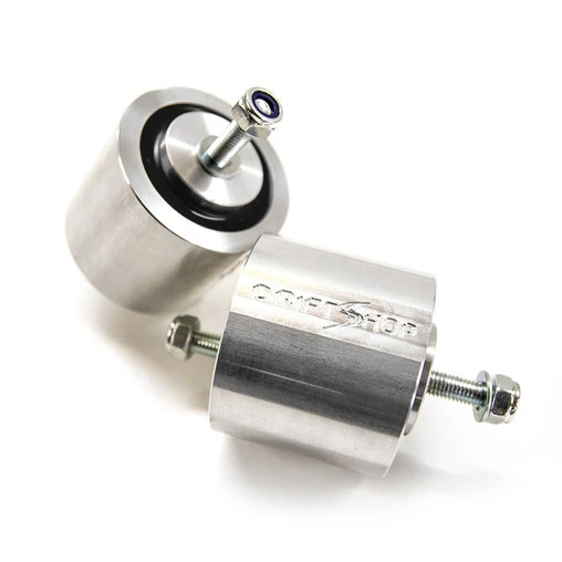 Much stronger than the original, these DriftShop mounts are machined from forged aluminium billet and reinforced polyurethane (Shore hardness = 70). They are particularly suitable for sporty road use, or with engine power increase or for engine swaps.