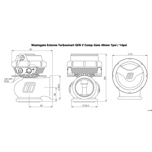 With excellent thermal performance, the wastegate also stands out thanks to its specific locking ring allowing an easy and quick change of spring. Its Nomex silicone diaphragm for linear travel ensures an excellent response. The CompGate40 also incorporates holes dedicated to optional water cooling.