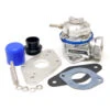 This product is available in black, blue, red or purple and is optionally equipped with a 7 psi (0.5 bar) or 14 psi (1 bar) spring. Its actuator allows for different combinations of spring calibrations (up to 3 housings: interior, intermediate and exterior) depending on the desired pressure. The wastegate is supplied with an assortment of springs: black 3 psi (0.2 bar), gray 5 psi (0.3 bar), pink 7 psi (0.5 bar) and red 14 psi (1 bar).