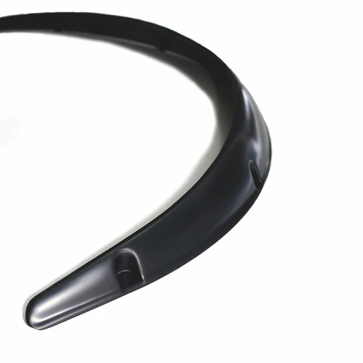 Perfectly mixing old-school and modern designs, theses fender flares are made from 2 mm thick ABS plastic, ultra flexible and extremely resistant, as shown in the photo above. They can be thermoformed if required, and have an anti-UV coating. These unique properties ensure great resistance for all types of use, with an exceptional lifespan. They can be easily adapted to fit a wide range of bodywork shapes.